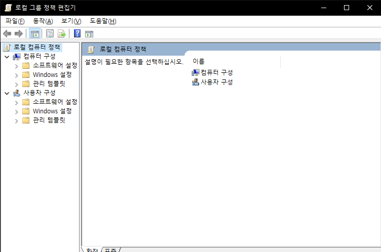 윈도우 + r - gpedit.msc 입력 후 엔터