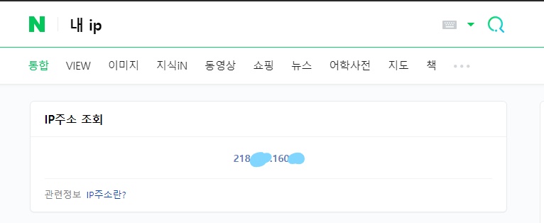 마지막으로 네이버에 내 ip를 검색해서 정상적으로 vpn이 정상적으로 작동하는지 확인하시면 됩니다.